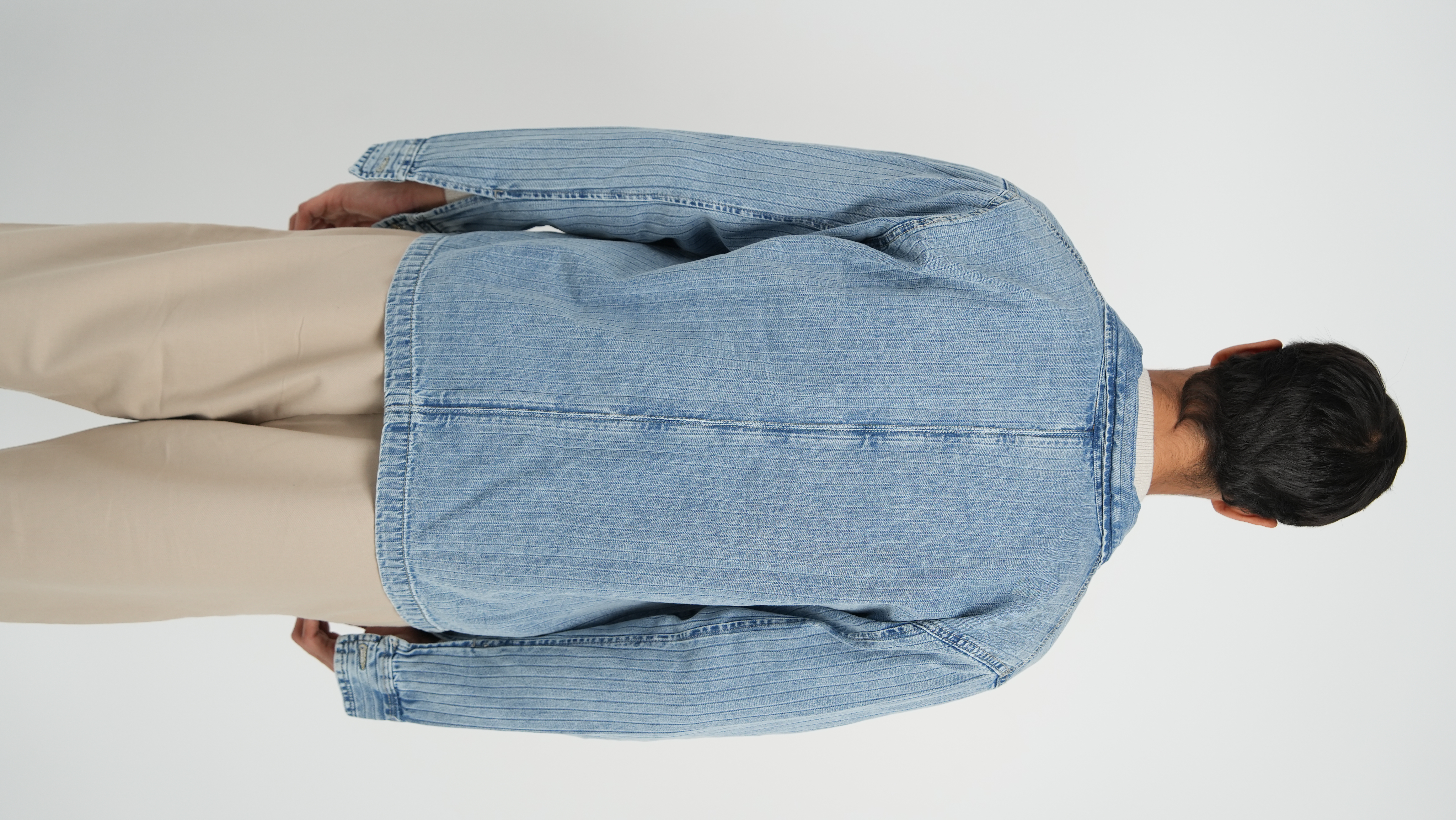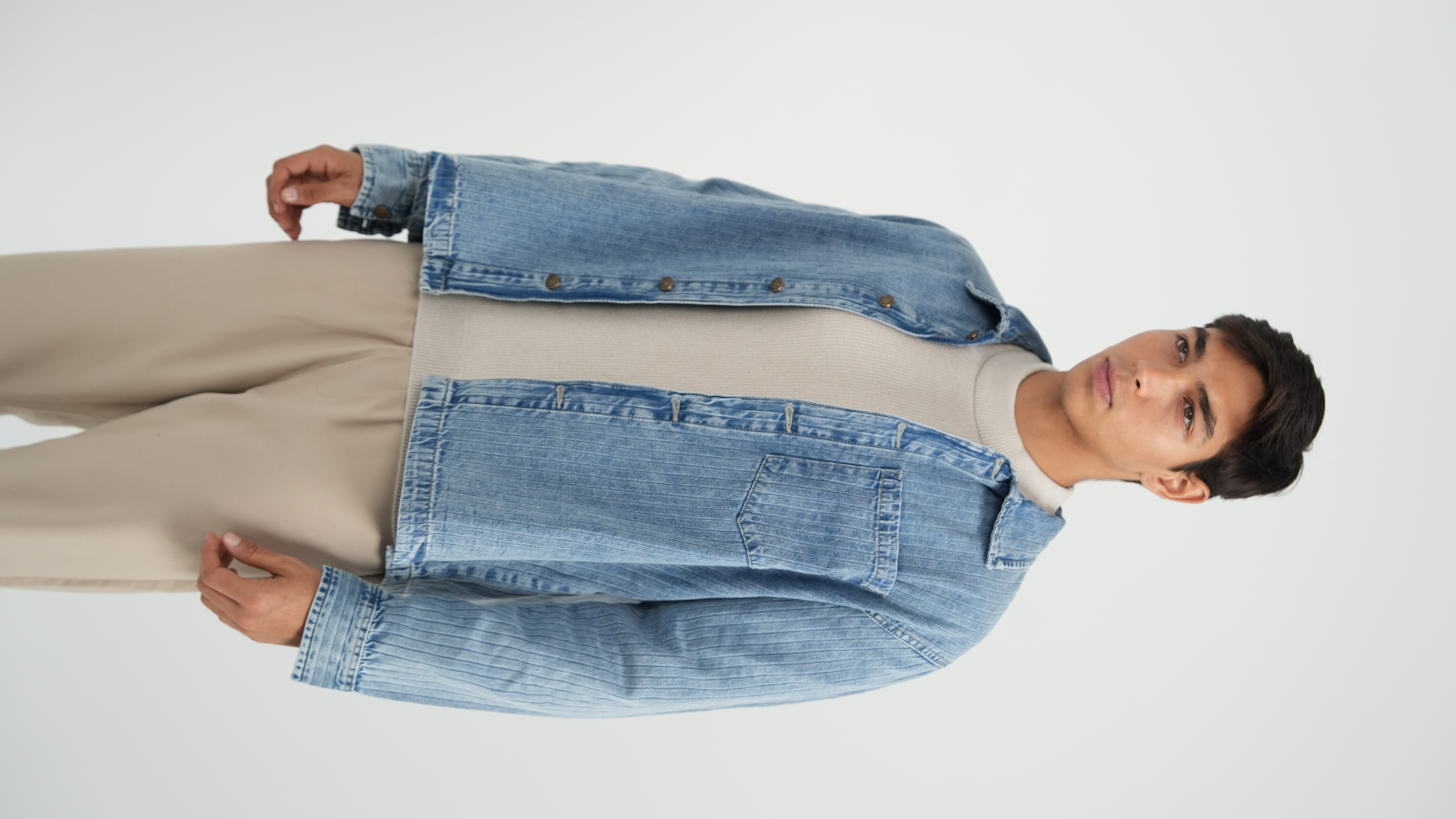 A denim shirt that combines comfort and style, made from high-quality materials that provide light warmth and a modern look suitable for all occasions. It features a comfortable fit, is practical, and ideal for everyday wear and outings.