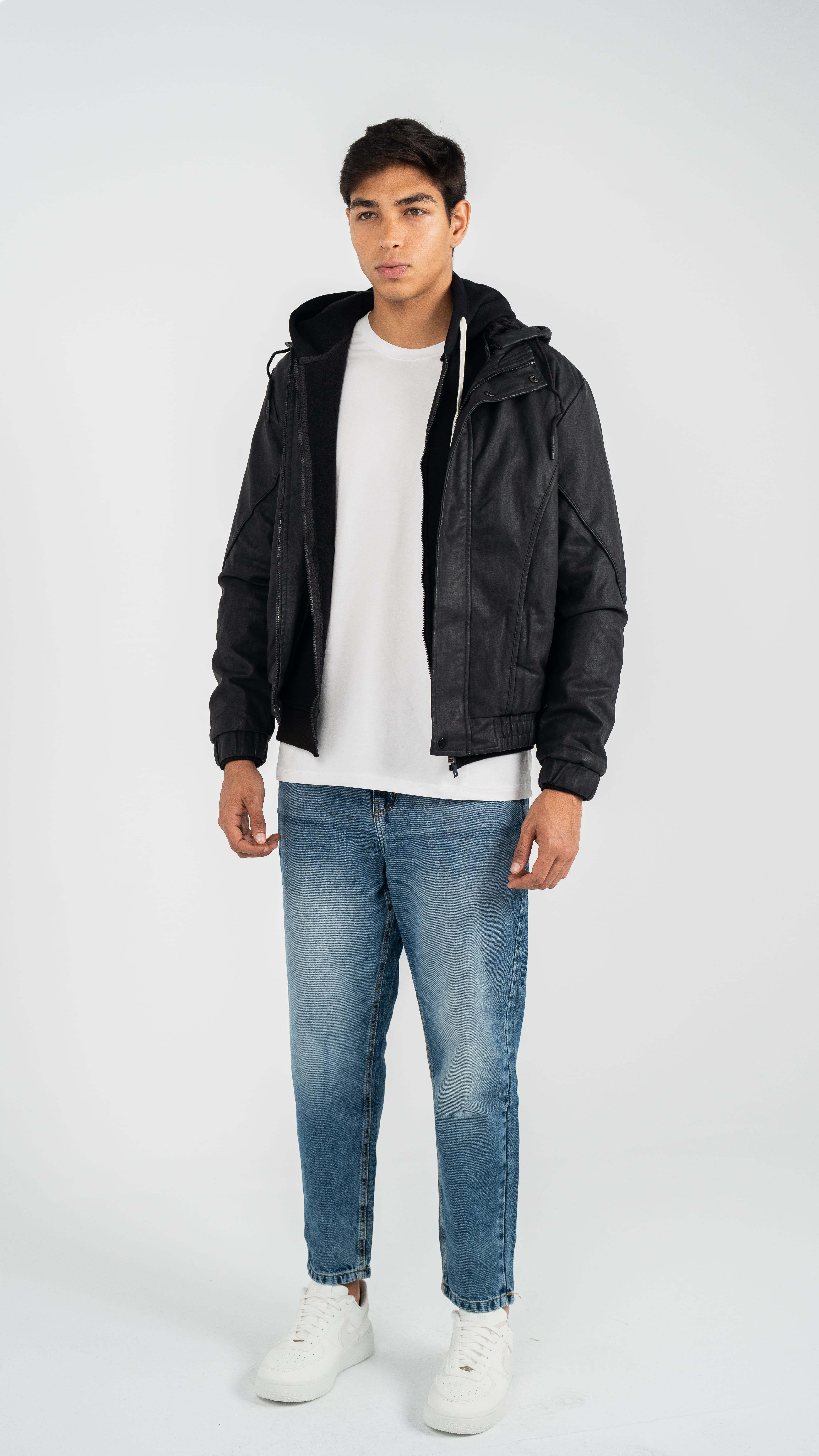 JACKETS | CoatsThis leather jacket combines comfort and style, crafted from high-quality materials that provide light warmth and a modern look suitable for all occasions. It features a relaxed fit, elasticated cuffs for a secure fit, and a practical front zipper, making it ideal for everyday wear and outings.